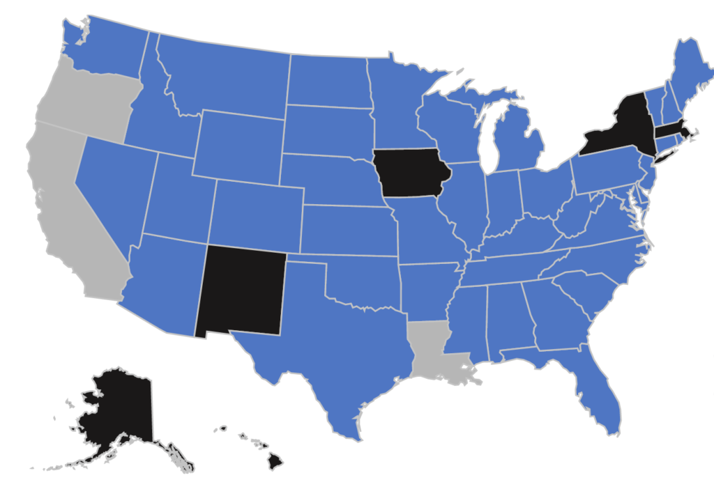 We offer teleNeuropsychological evaluations to patients located in all states shown in blue above.